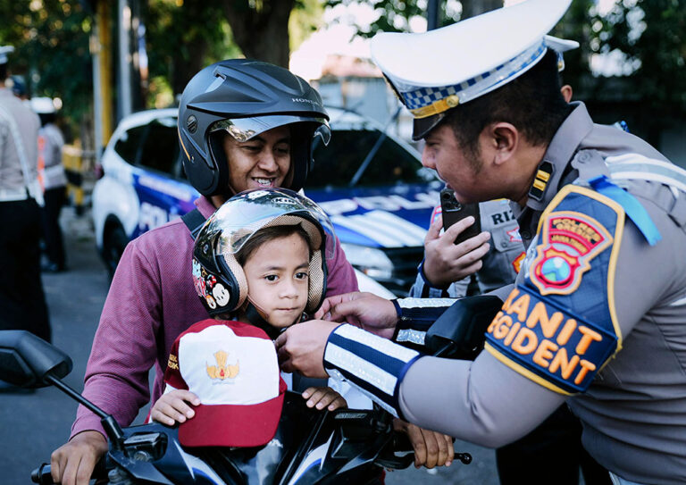 Dalam kegiatan ini, Satlantas Polres Gresik memilih pendekatan yang lebih simpatik, tak hanya membagikan brosur berisi tujuh prioritas pelanggaran lalu lintas, tetapi juga memberikan helm gratis kepada pengendara, terutama anak-anak, yang kedapatan tidak mengenakan pelindung kepala.