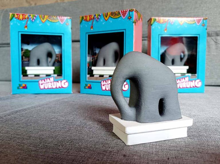 Miniatur berbentuk gajah ini dicetak menggunakan printer 3D dengan bahan PLA (Polylactic Acid). Inspirasi Rachmad datang dari patung gajah yang berdiri di Perlimaan Sukorame Gresik, tepatnya di pertemuan Jl. Dr. Soetomo dan Jl. Proklamasi. Patung tersebut sempat viral di media sosial karena bentuknya yang unik.
